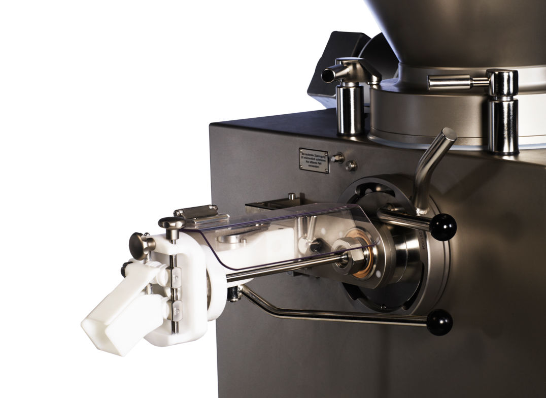 Este acessório reduz significativamente as divisões da tripa, o que aumenta a produtividade e a lucratividade. Se ocorrer um rompimento, não é necessário parar a produção - a tripa não rasga no dispositivo e tudo o que é necessário, é um simples enxágüe do dispositivo usando o enxaguante integrado.
